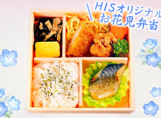 Отправьтесь в захватывающее весеннее путешествие, где вас ждут голубые холмы, увитые немофилой, в приморском парке Хитачи и великолепные туннели из глициний в Асикаге, в сочетании со специальным оригинальным бенто от HIS, украшенным цветами сакуры.